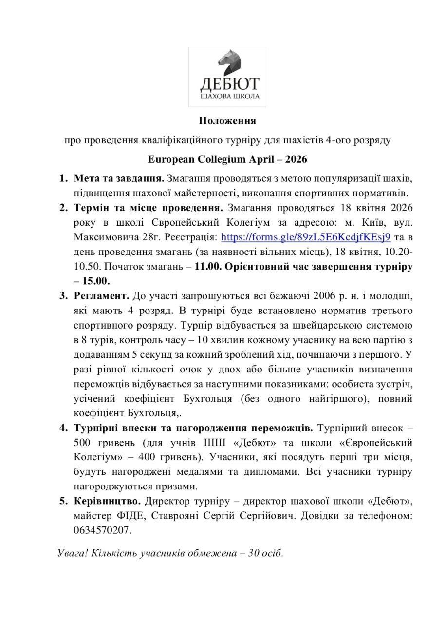 Кваліфікаційний турнір для шахістів 4 розряду