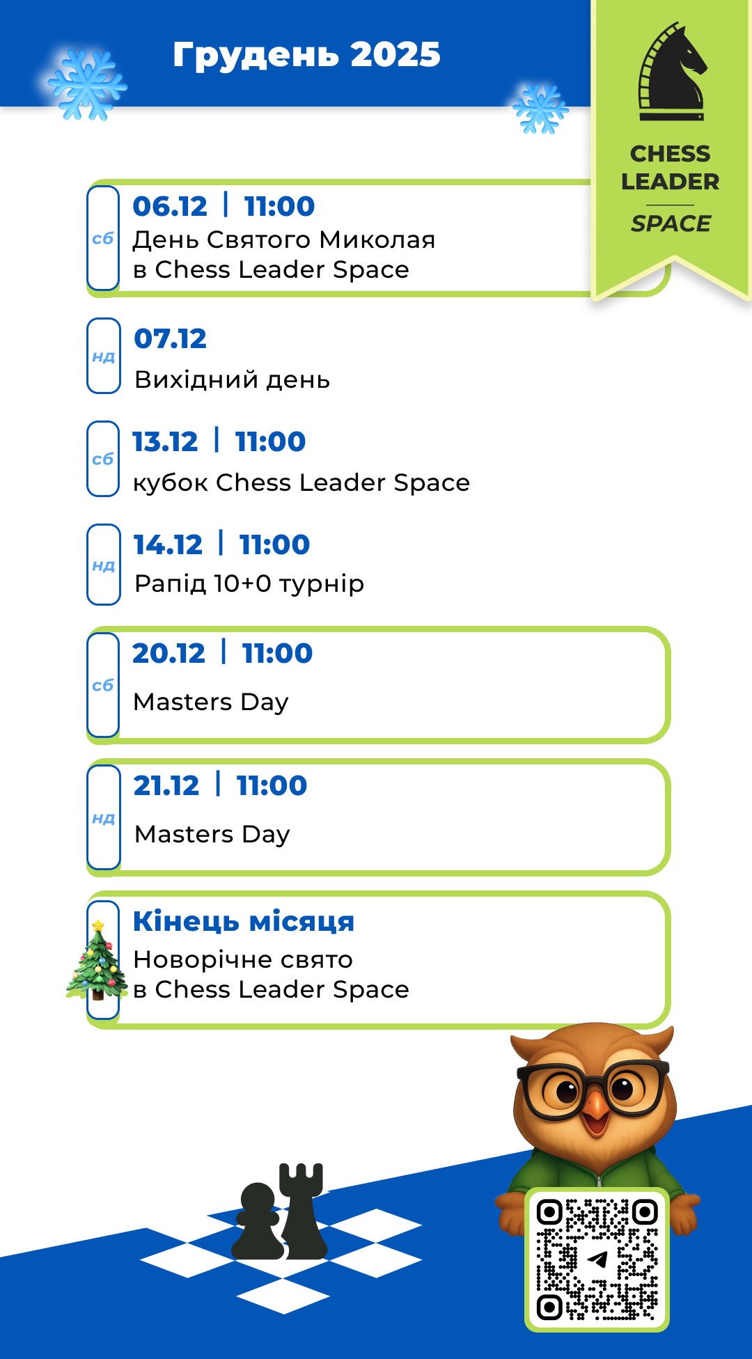 05.11 Додано анонс турніру «Командний турнір ЛКК» (30.11, Київ); 04.11 Додано анонс турніру «DRAGOMANOV FIT 2025» (7-9.11, Київ); 31.10 Додано анонс турніру «Шлях до Майстерності. Чернівці» (21-26.11, Чернівці); 30.10 Додано анонс турніру «Меморіал Ю.Геллера» (29.11, Одеса); 28.10 Додано анонс заходу «Академія чемпіонів» (22.11, Київ); 26.10 Оновлено Реєстр суддів 1 категорії; 24.10 Додано анонс турніру «Кубок Поділля» (13.12, Вінниця); Поточні рейтинги ФІДЕ Наші партнери