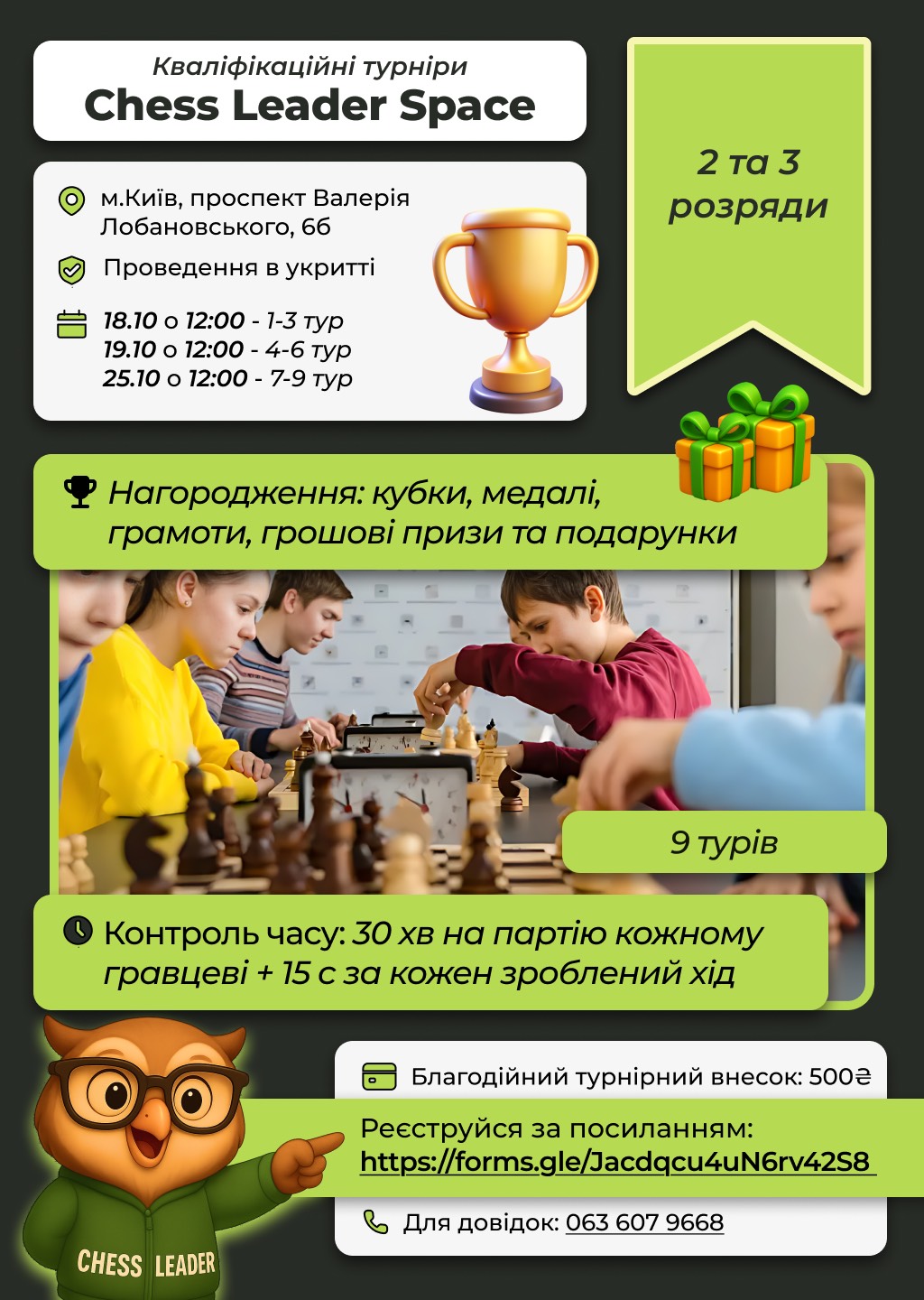 Змагання відбудуться в п'яти вікових категорій: до 9, до 11, до 13, до 15 та до 17 років. ➡️ Кінцевий термін реєстрації: 25 жовтня 2025 року. ➡️ Для заявки на участь необхідно заповнити гугл-форму https://forms.gle/cWFthYhnq9hGW9ZQ8.